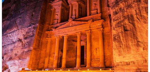 Este será um dia inesquecível em Petra. Após o café da manhã, você passará o dia inteiro explorando a cidade rosa, entrando pelo Siq e se maravilhando com o Tesouro, a Rua das Fachadas, os Túmulos Reais e o Mosteiro. À noite, se estiver disponível, você poderá participar do evento "Petra by Night", onde o Tesouro é iluminado por milhares de velas, criando uma atmosfera mágica. Pernoite em Petra.